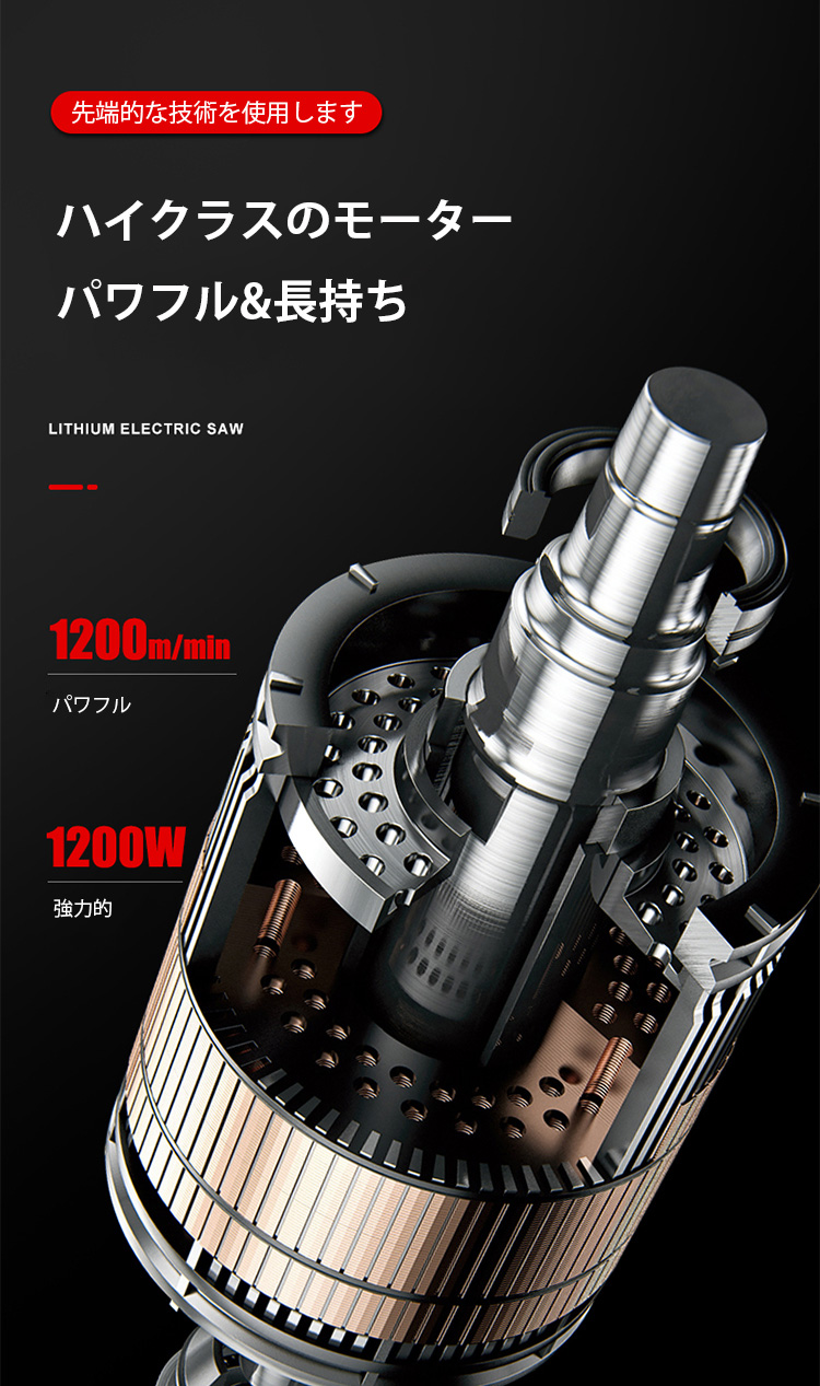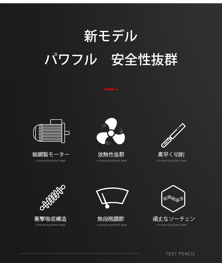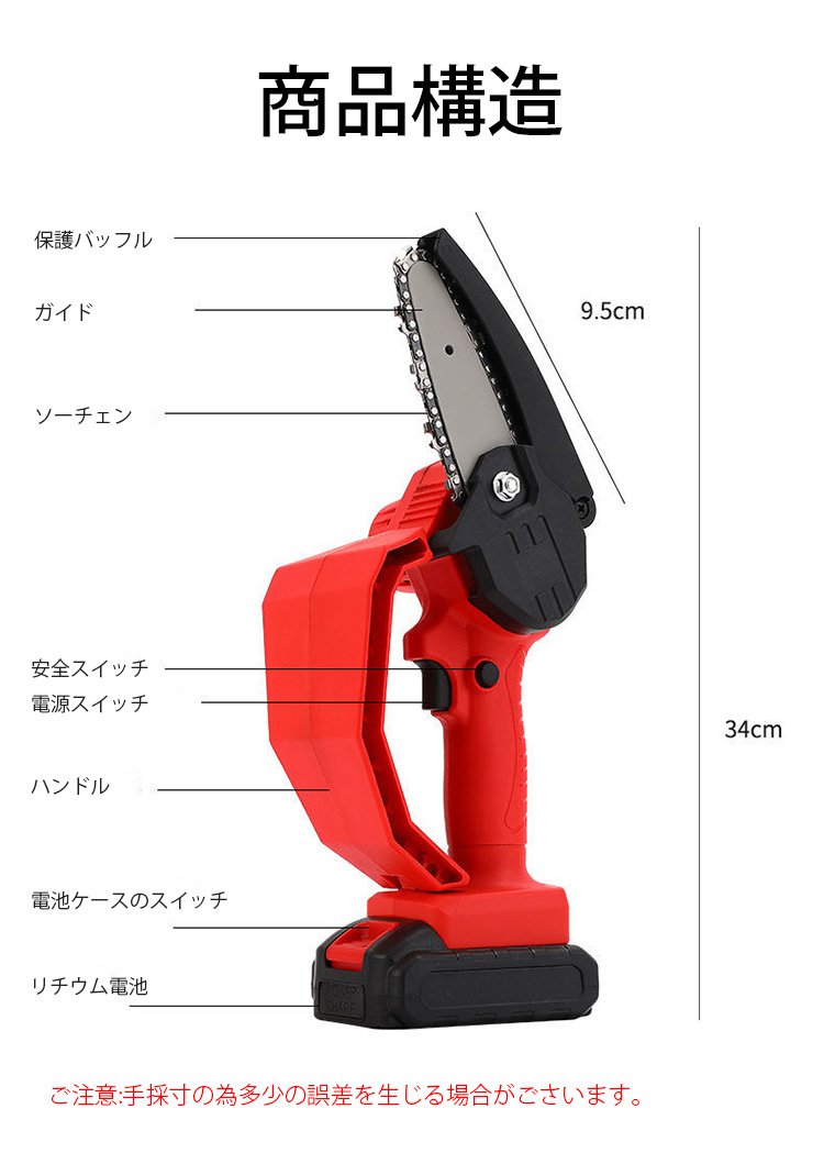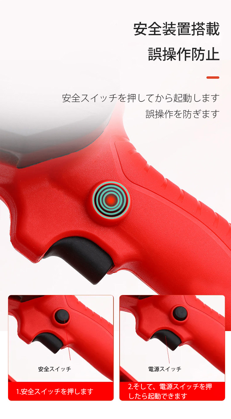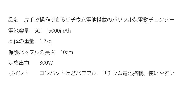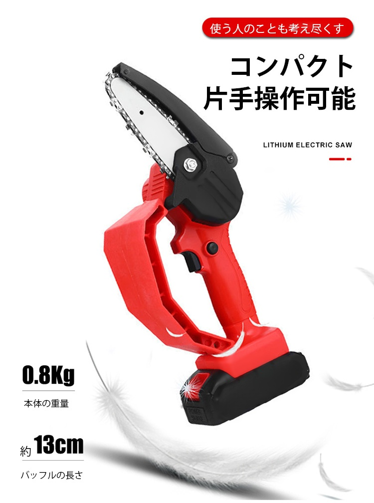 【小型電動チェンソー】コンパクト、片手操作可能、素早く切削、長時間稼働可能、安全、誤操作防止
